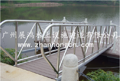 防腐鋼結(jié)構(gòu):活動引橋為鍍鋅鋼結(jié)構(gòu)支架,全電焊,熱鍍鋅防腐,鋅層厚度85微米,所有鋼結(jié)構(gòu)均有大型鋼廠合格證書;結(jié)構(gòu)強度大,抗曲性能優(yōu)良,定期維護(hù)足以支持20年以上。引橋鋪板可采用實木或者木塑板,用316不銹鋼螺栓與底部接合;引橋底部采用尼龍滑輪與主浮橋連接。鉸接軸承,滑輪軸承和所有的螺絲都用Aisi316不銹鋼材料。