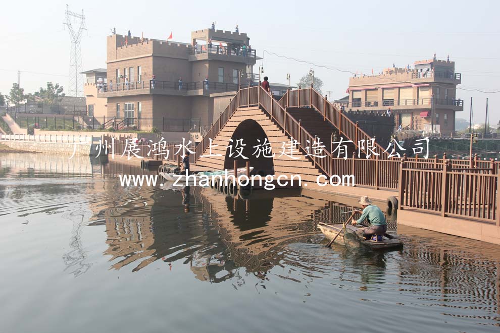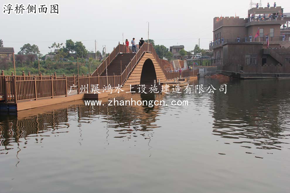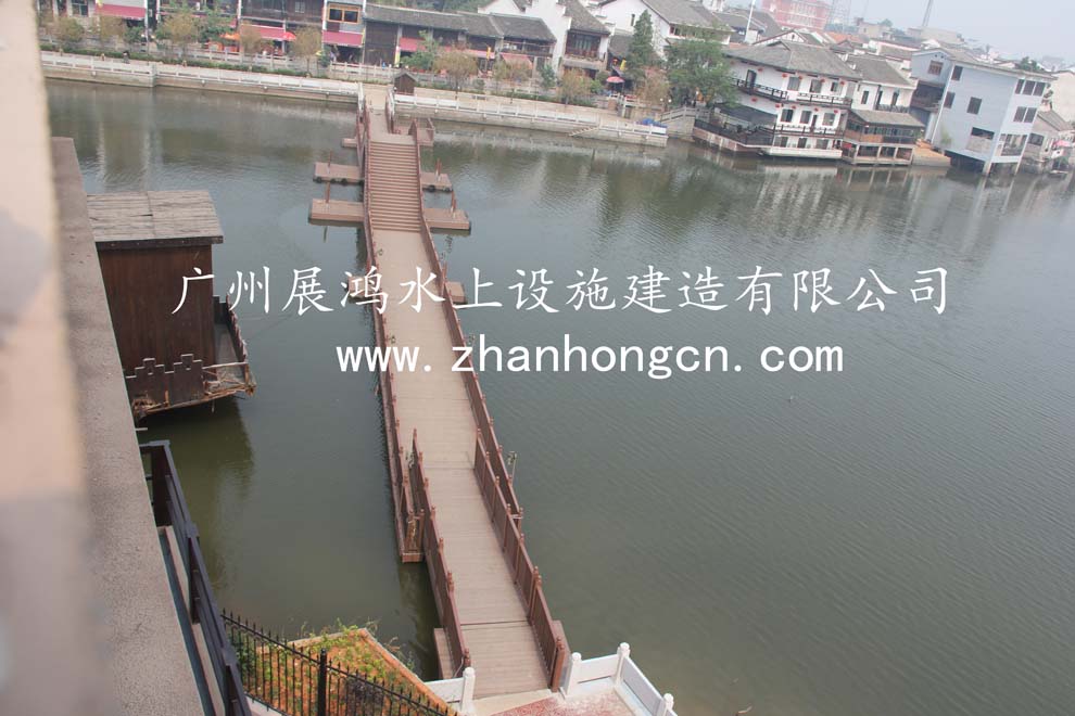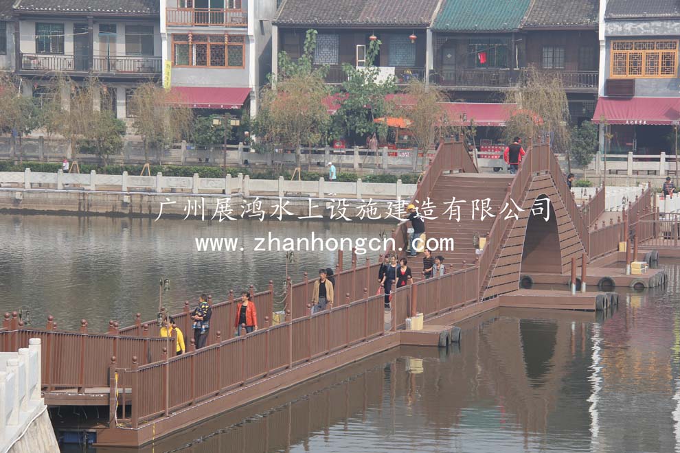 This floating bridge across the Lujiang river in Ancient Town, there is a big film base, the bridge can provide a big scene for the film.